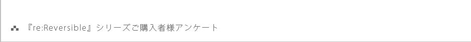 | 16.07.29 | 『re:Reversible』本サイトオープン。「ABOUT」 「PRODUCT」 「BLOG」を更新。 |